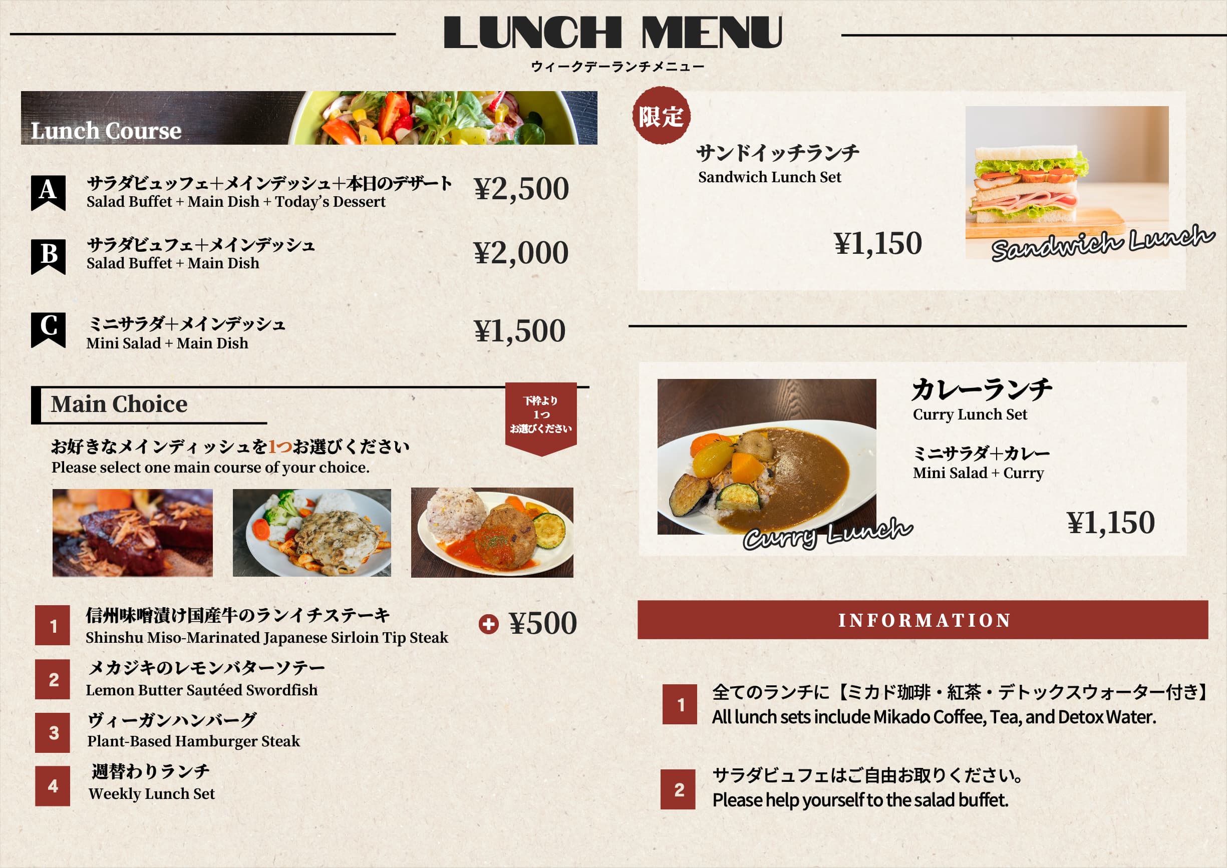 軽井沢で人気の野菜カレーや、ヴィーガン・ベジタリアンメニューも常時提供。